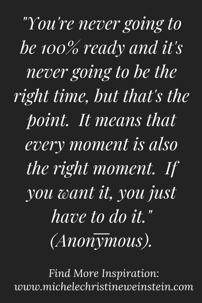 From Michele: There’s this saying that “you’re never going to be 100% ready and it’s never going to be the right time, but that’s the point. It means that every moment is also the right moment. If you want it, you just have to do it.” (Anonymous). I couldn’t agree anymore.