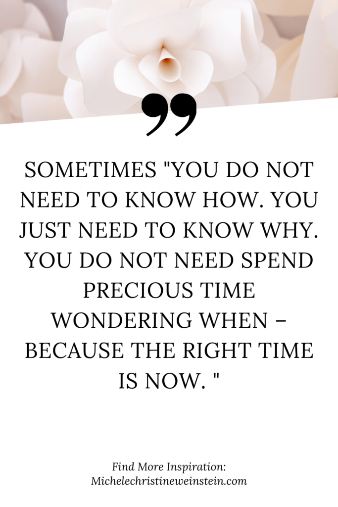 And that’s just it, as Megan says below…sometimes “you do not need to know how. You just need to know why. You do not need spend precious time wondering when – because the right time is NOW. “